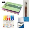 Zde naleznete další pomůcky, které by se Vám mohly hodit. Ať už šablony na bookeh techniku, skleněná akvarelová pera, krycí gumy, či prázdné kazety na akvarelové barvy a palety.