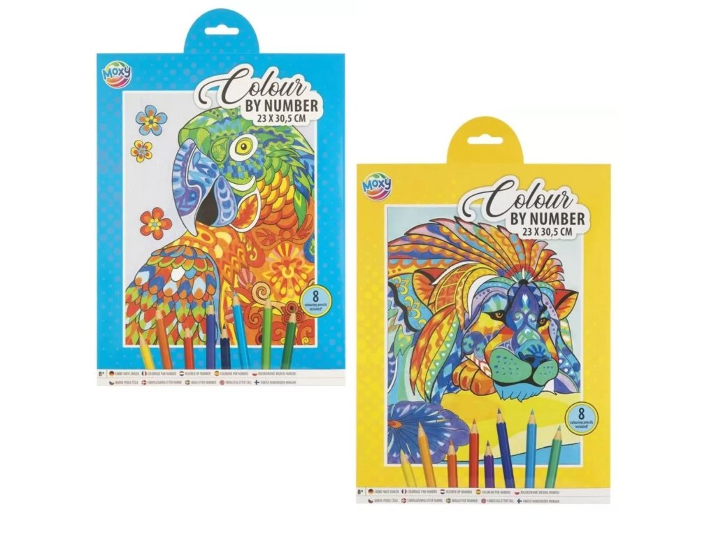 Kreativní sada na malování podle čísel pro děti i dospělé. Vytvořte si veselý obrázek lva nebo papouška. Návod s čísly vás provede procesem bez stresu. Vybarvujte a sledujte, jak obrázek ožívá.