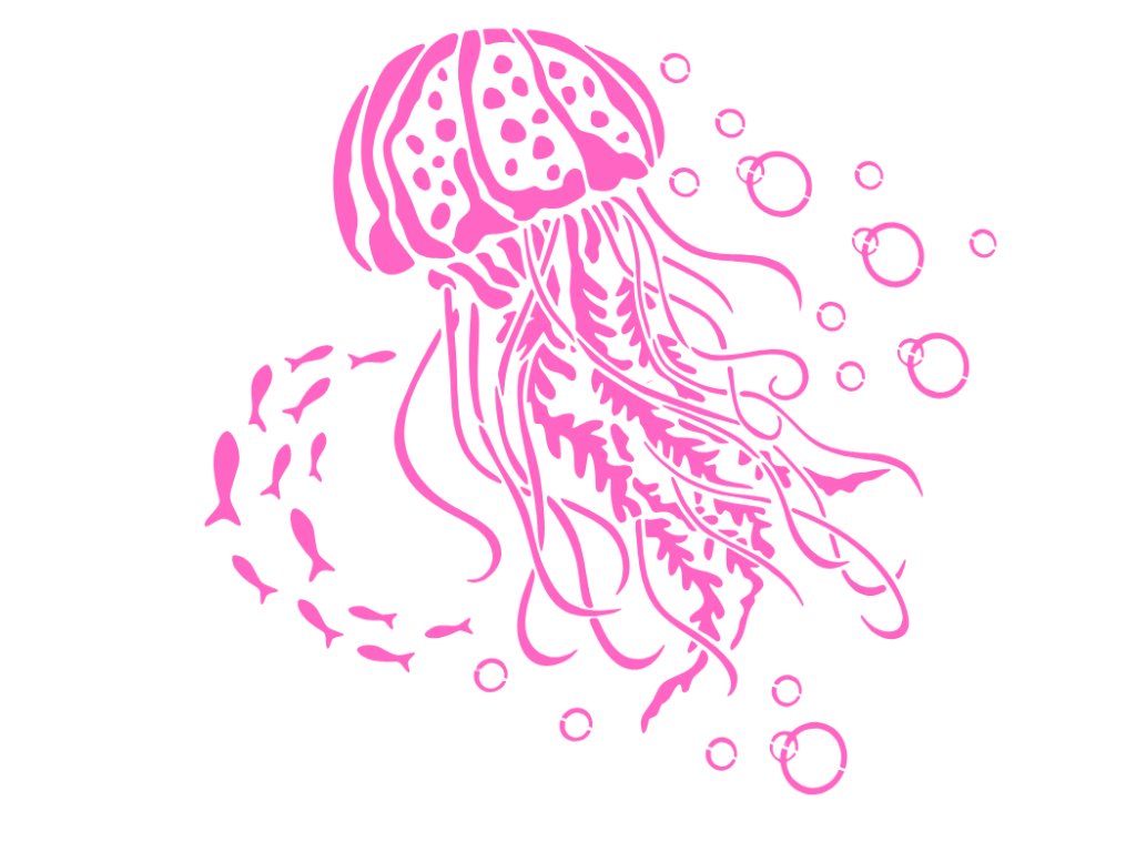 V sadě je přiložena i plastová šablona medúzy pro ty, kteří si netroufají malovat jen tak od ruky. Šablona je opakovaně použitelná a můžete s ní tvořit nejen na textil, ale také na papír, dřevo, stěnu a další povrchy.