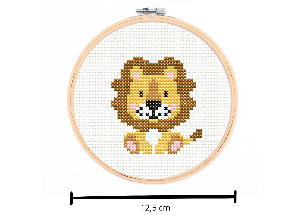 Sada na jednoduché křížkové vyšívání - vzor lev, průměr 12,5 cm