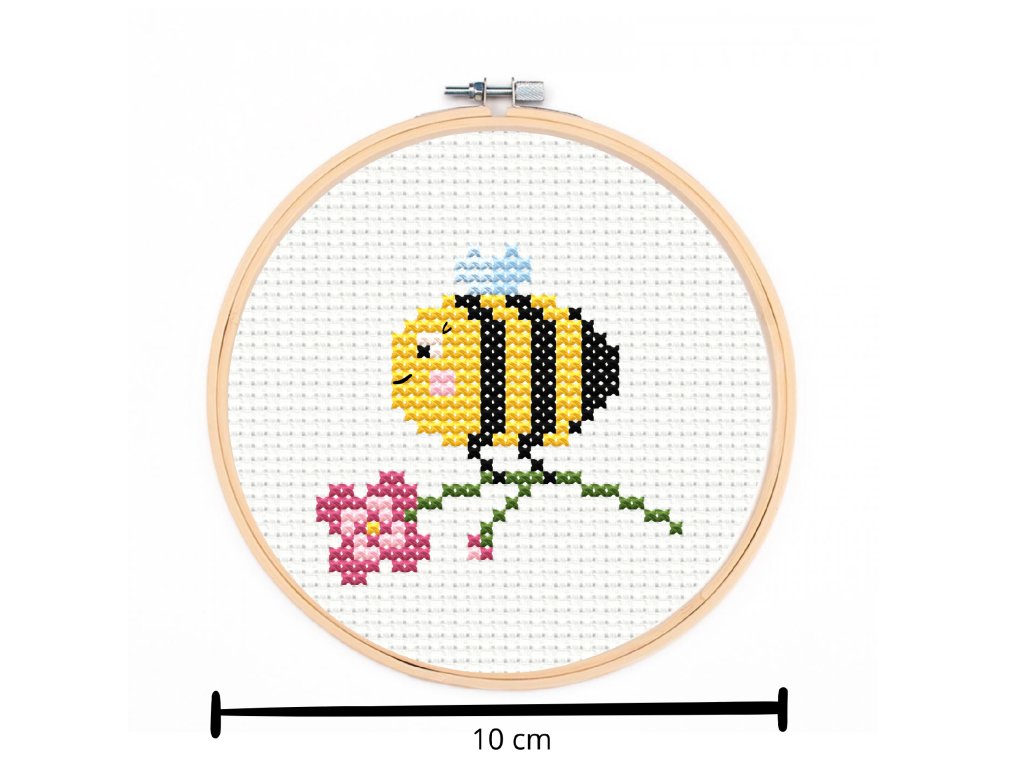 Malá sada na jednoduché křížkové vyšívání - 10 cm, vzor včelka