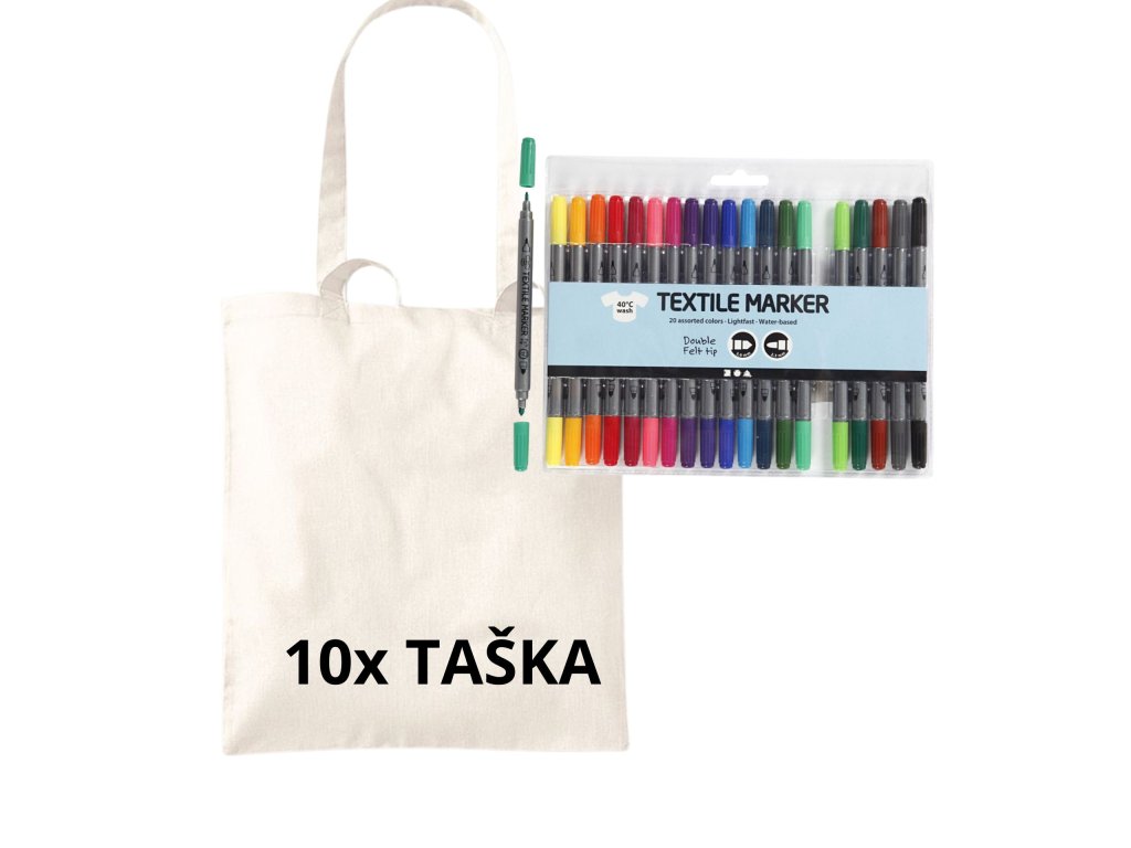 Sada na malování na textil - 10 tašek + 20 fixů