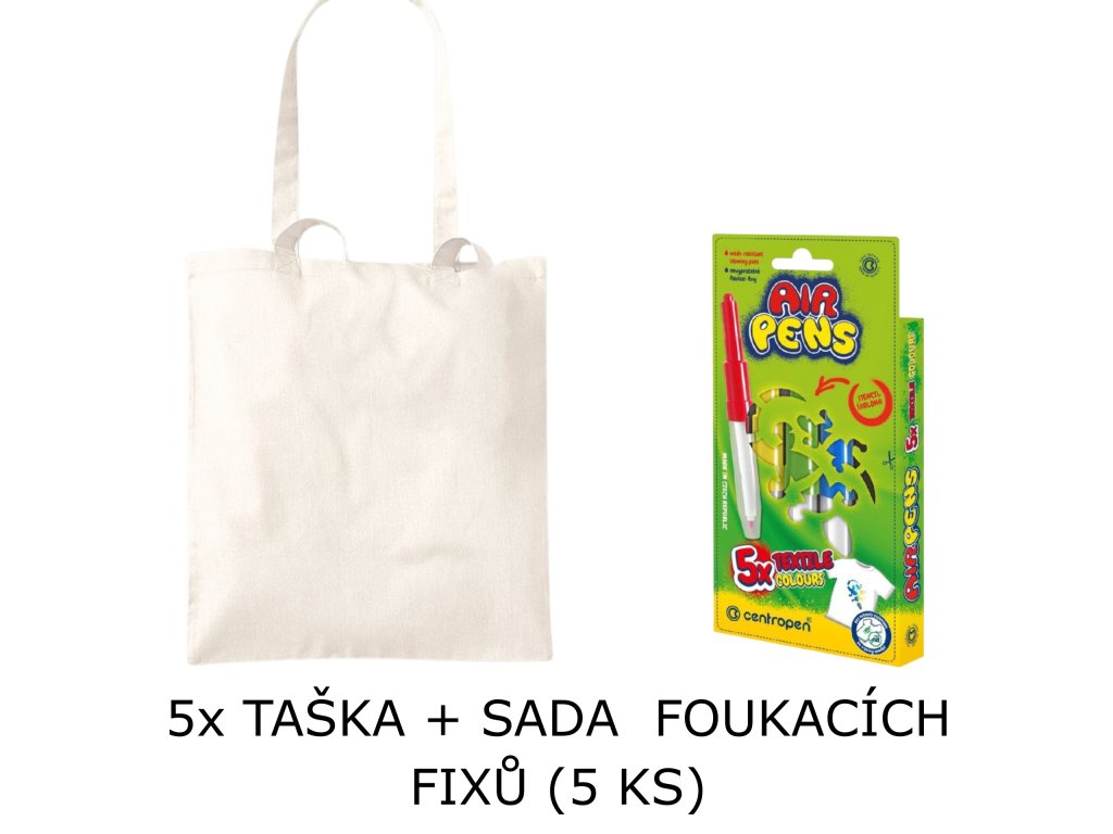 Sada bavlněných tašek k domalování s dlouhým uchem + foukací fixy na textil (5 nebo 10 ks)