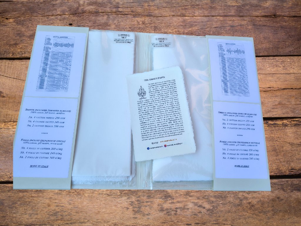 Amatruda - kolébka ručního papíru, kde se dodnes vyrábí jeden z nejkvalitnějších ručních papírů archivní kvality. Nově nabízíme tuto sadu papírů, kde si můžete vyzkoušet, který povrch a gramáž je pro Vás ta pravá.